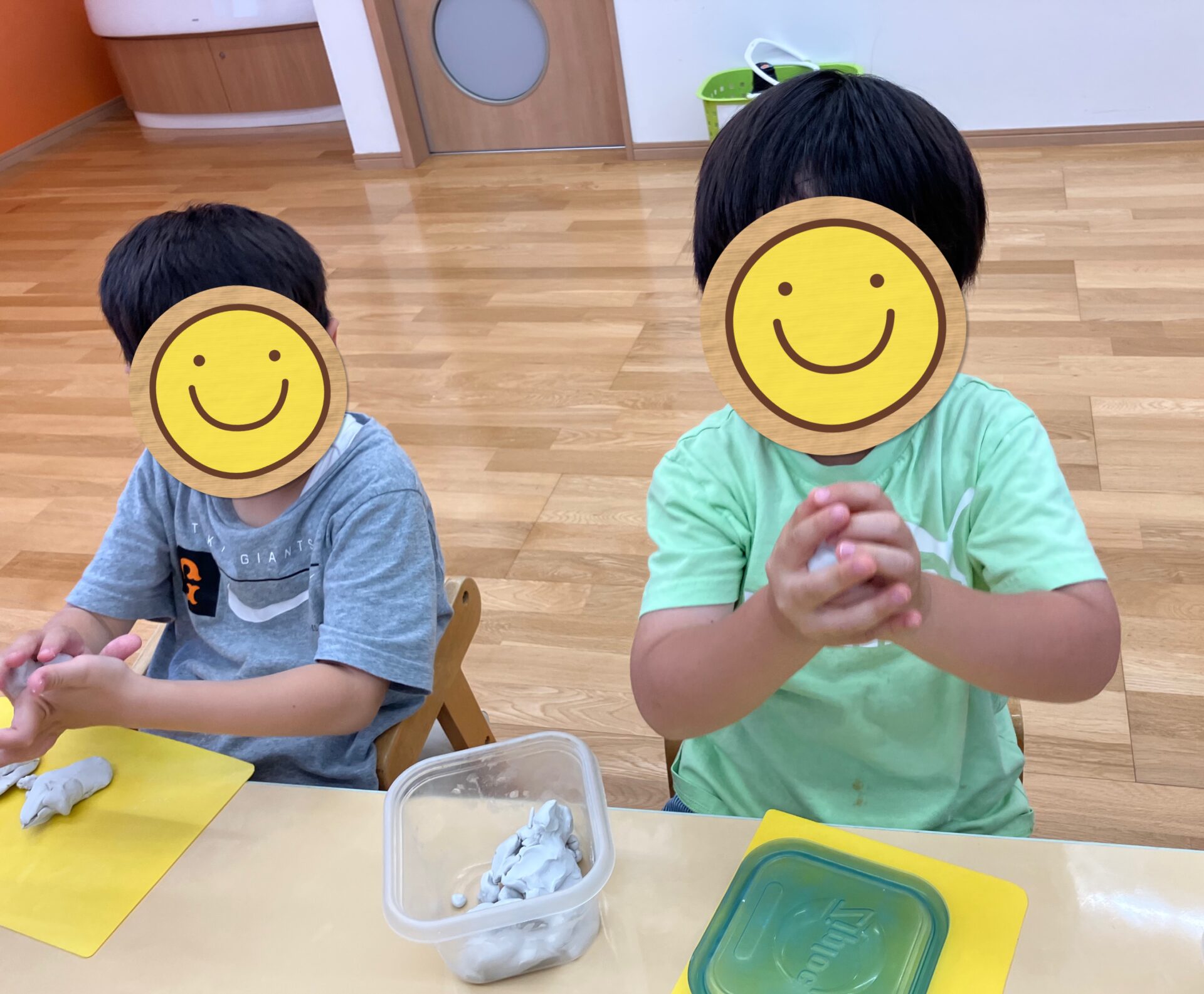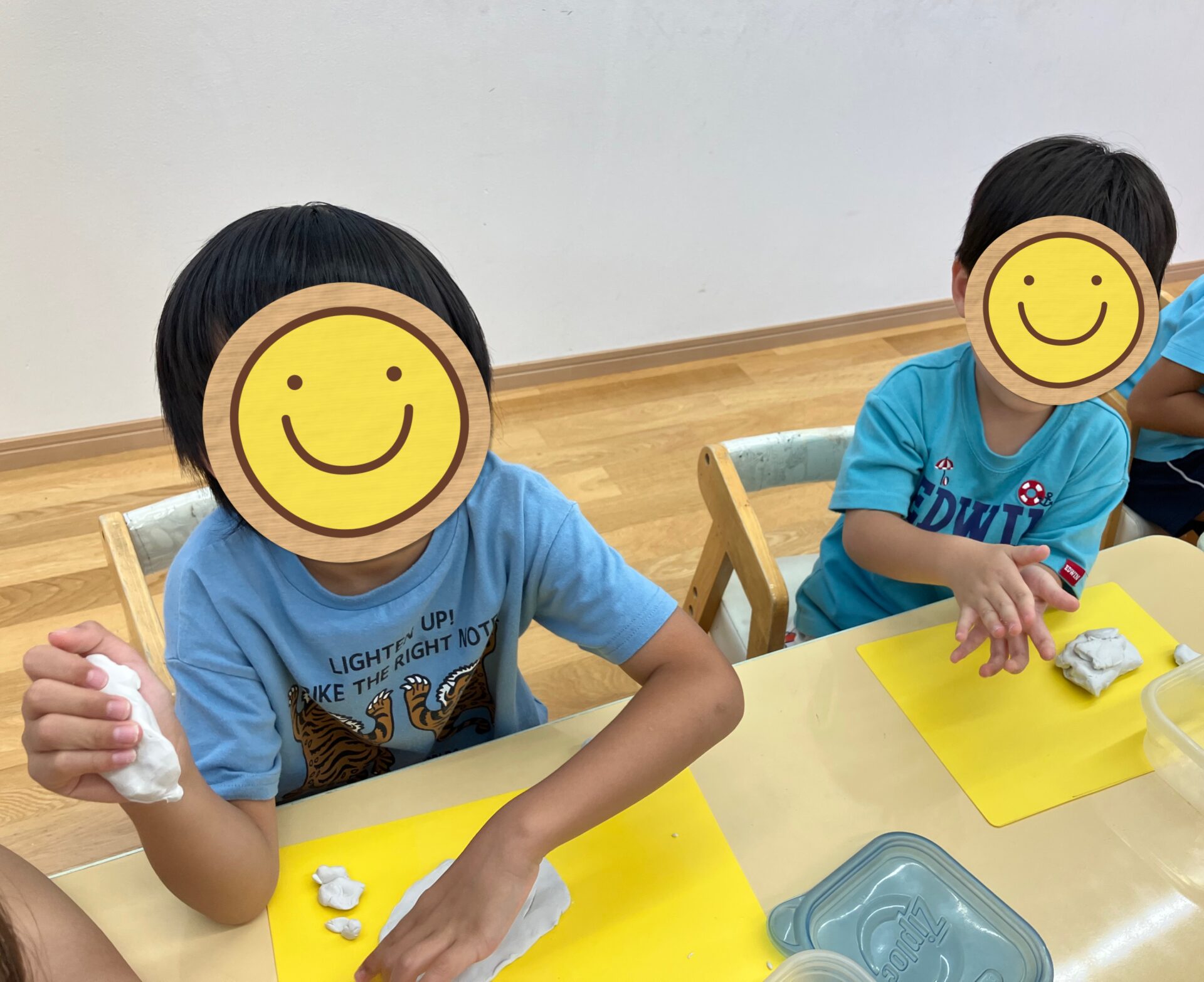 午後は、油粘土をやりました。 手先を使って、粘土をこねたり、丸めたりして遊びました。