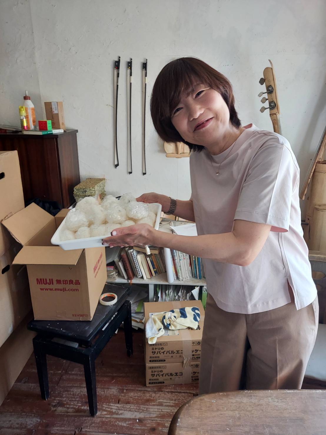 たくさんのおにぎりを作りながら、この事業を始めるきっかけや今後の目標など、お話を頂戴し、たいへん勉強になりました。事業は違いますが、弊社も熱意を持って取り組むことの大切さを再認識させていただきました。 渡辺様ありがとうございました。
