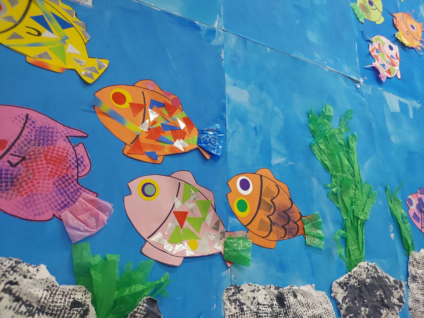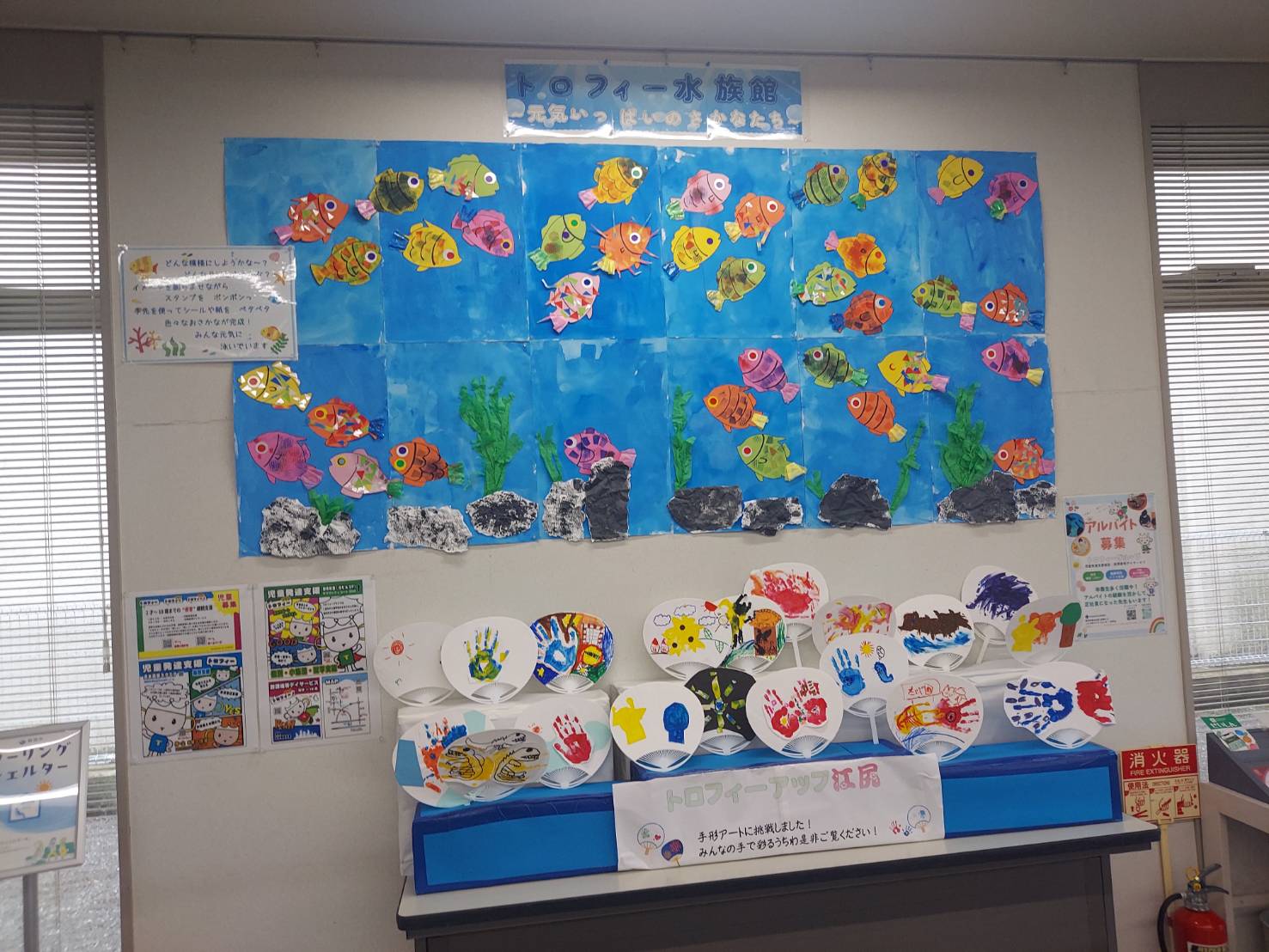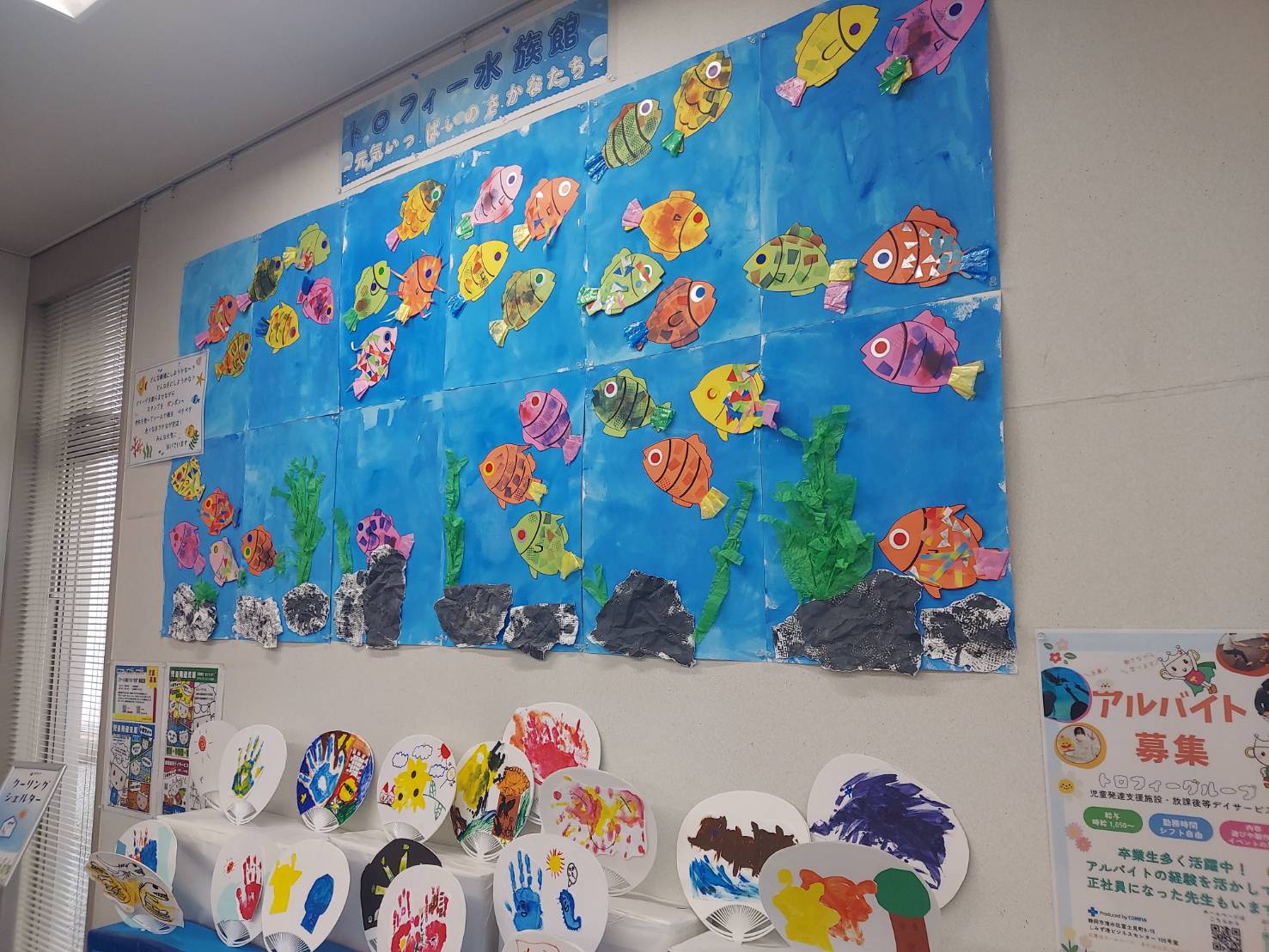 トロフィーアップ江尻の子ども達が、銀行の壁面に水族館を作りました。