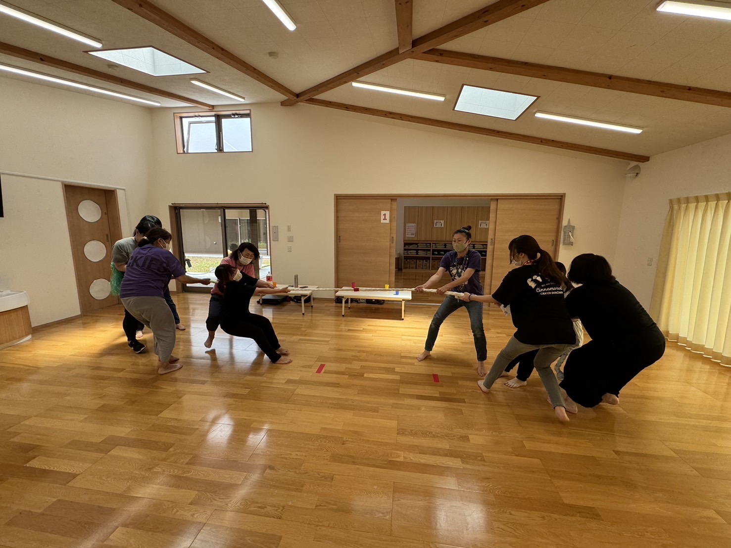 プロジェクトメンバーとの交流会では、今回のテーマ「繋がる」にかけて綱引きを行いました。