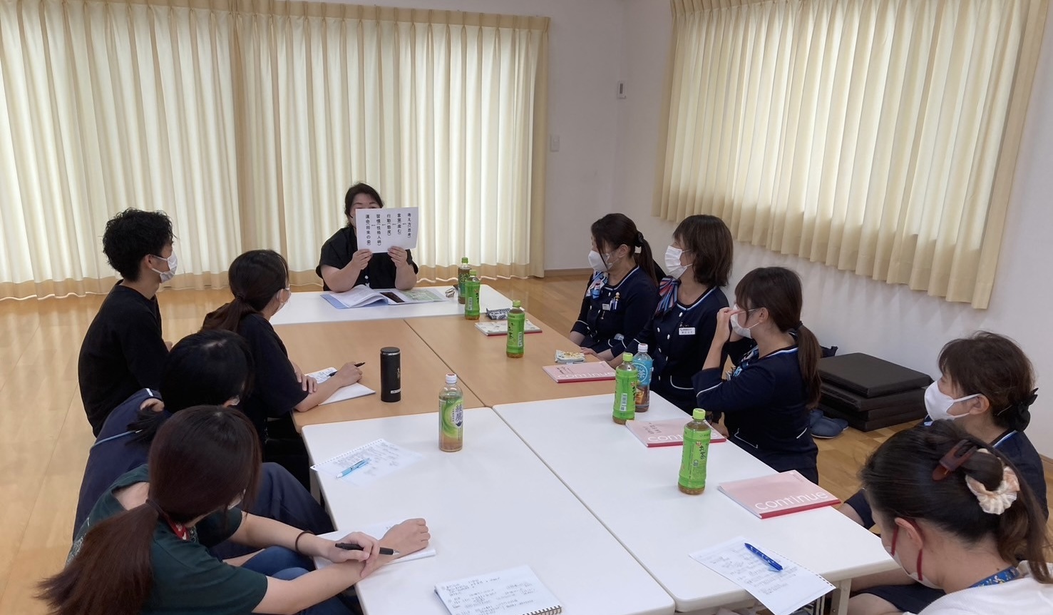 研修では思い出シアターで約1か月半を振り返った後、一人ひとり感想や感謝の気持ちを伝えながら、思い出を共有しました。