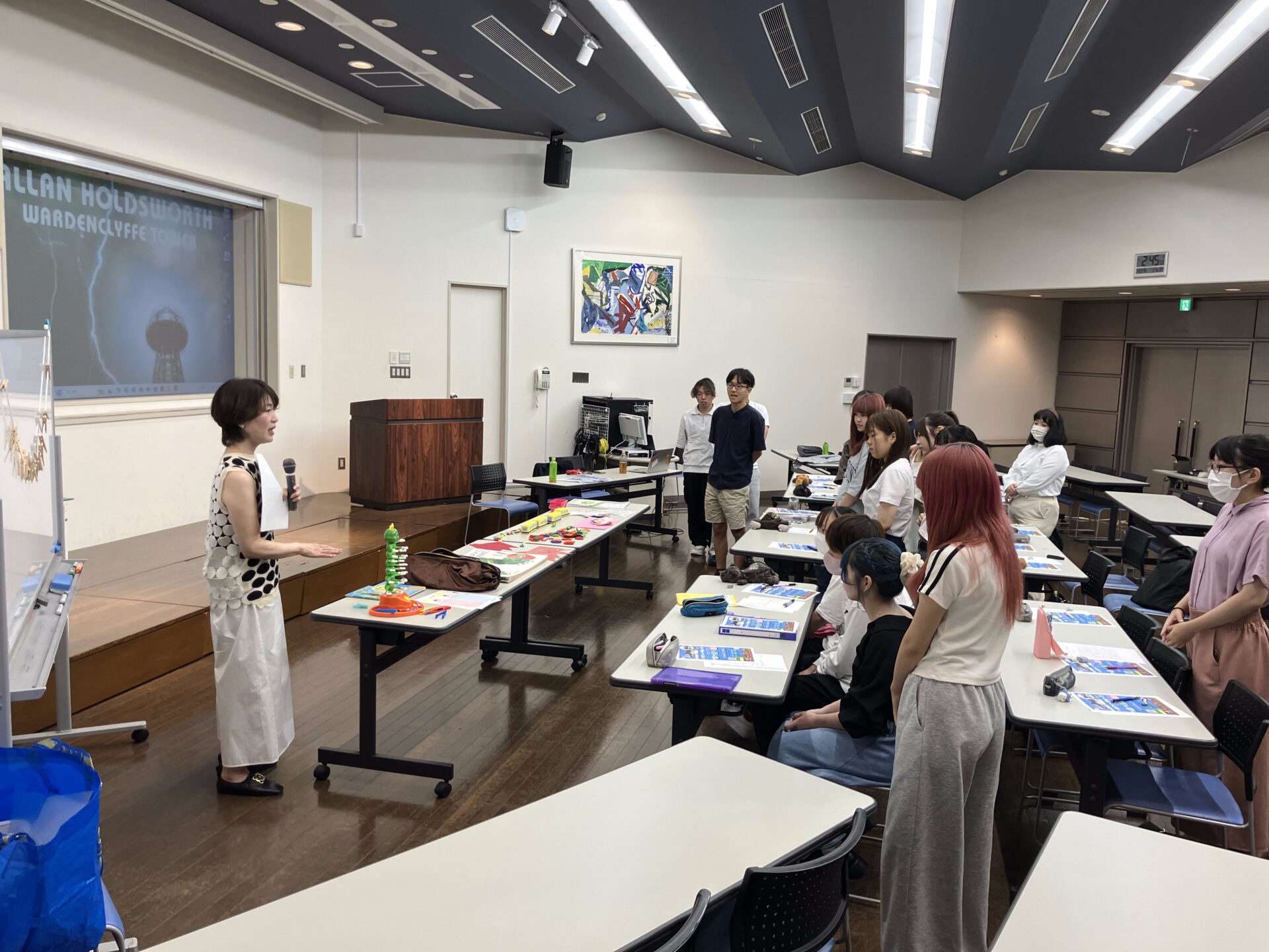 支援で使用している教材も並べ、学生さん達も興味を持ってみてくれていました。