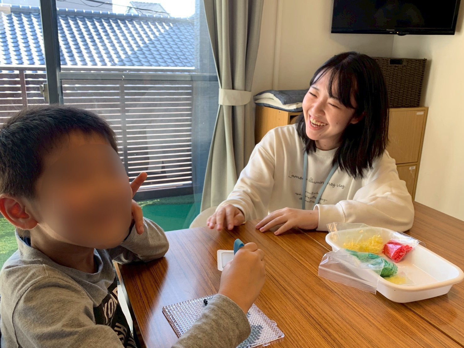 大学生の頃、発達障害を持つ子どもの遊びの支援をするボランティアに参加していました。障害について学校で学んではいましたが、実際に関わってみた子ども達には障害を感じられないような笑顔と明るさがありました。遊びだけでは見えない生活面の困りごとを、もっと近くで支援したいなと思い、発達支援施設に興味を持ちました。