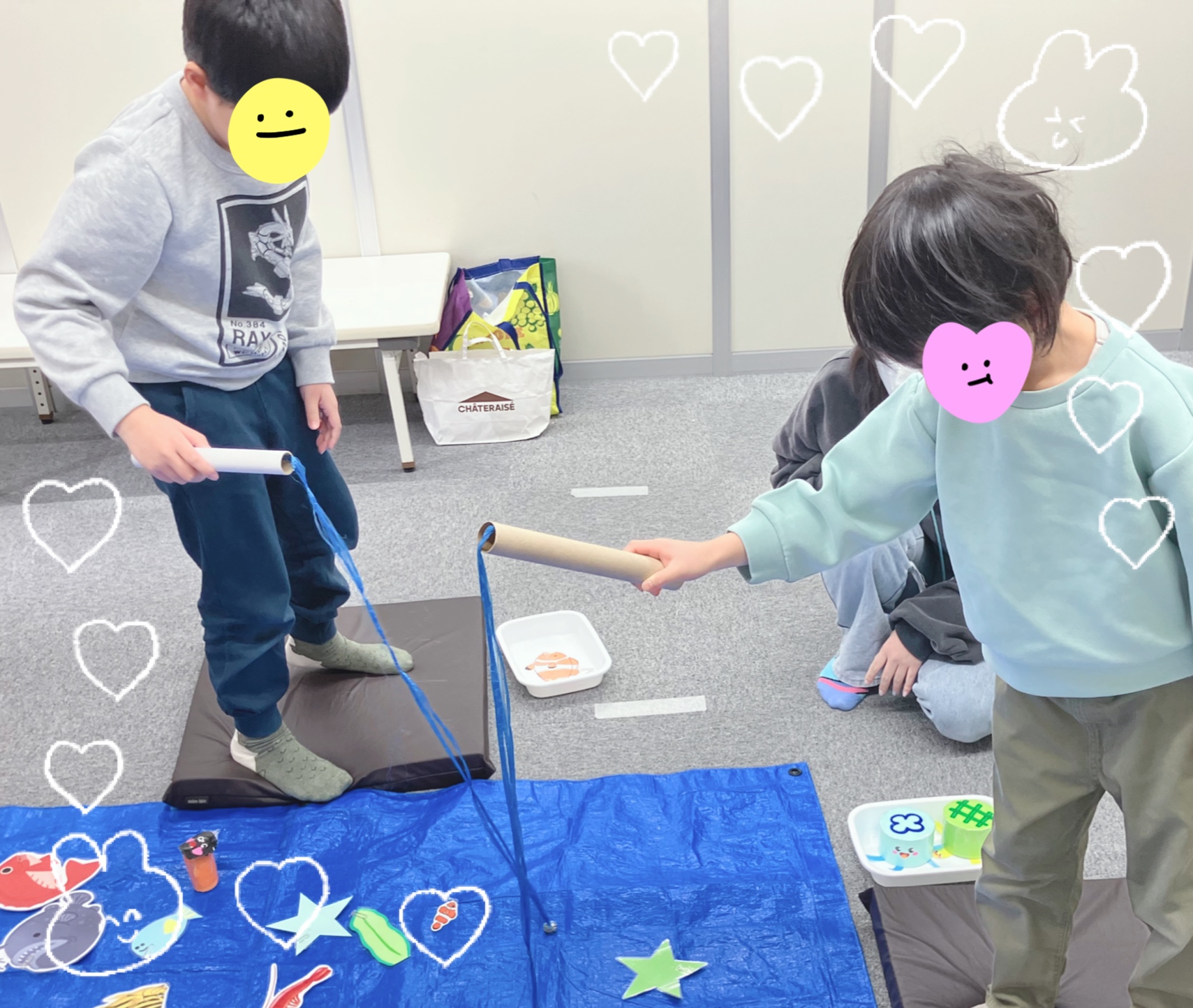 うみしるに行く前にみんなで魚釣りゲームをしました🎣