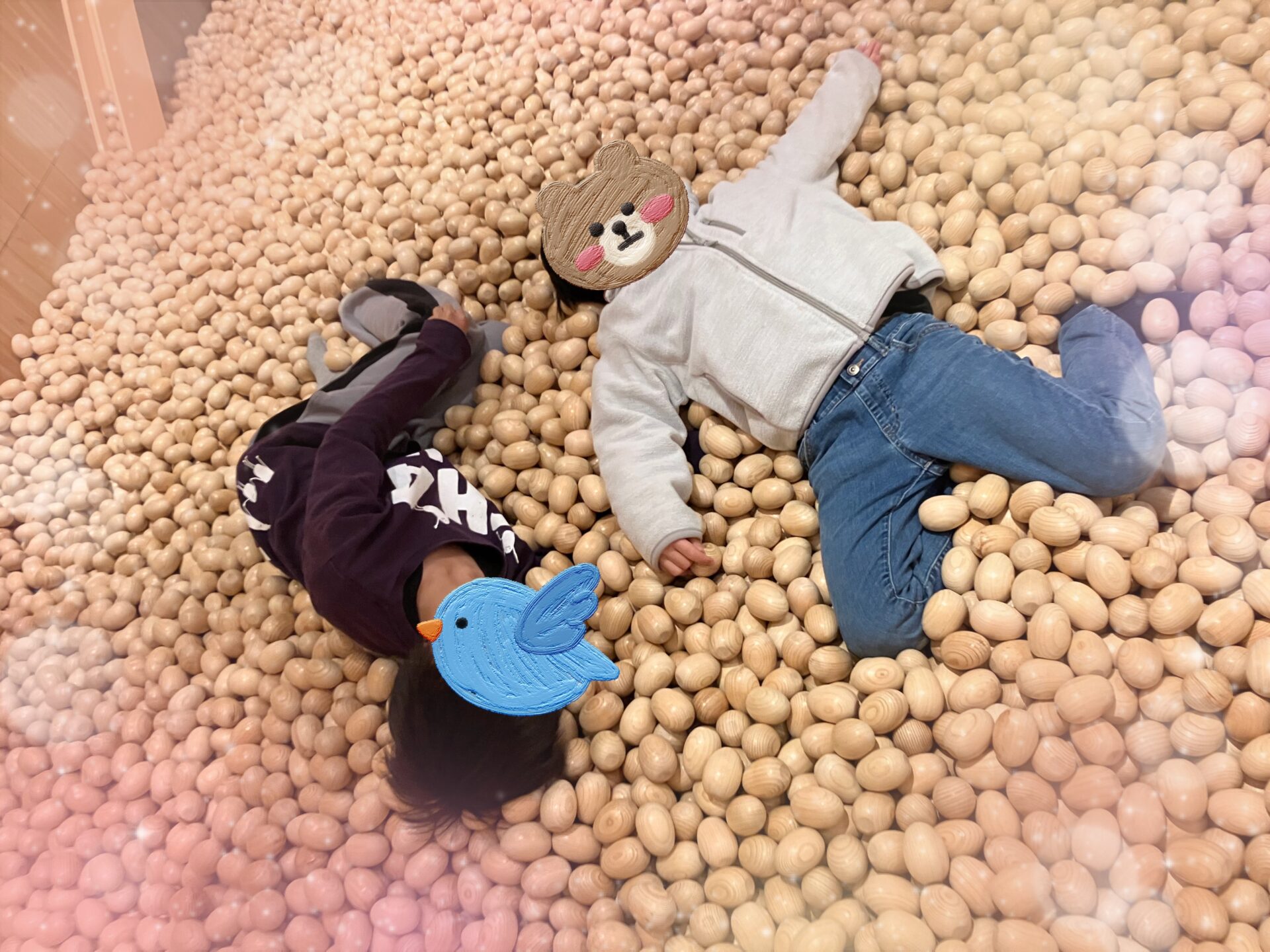 木の卵のプールの上に